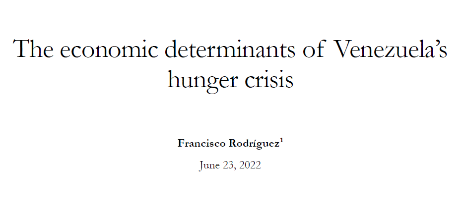 This paper argues that Venezuela’s hunger crisis was caused by the collapse of the country’s import capacity. I show evidence supporting the hypothesis that the key driver of the decrease in caloric intake was the decline of more than nine-tenths in oil revenues, which sparked an economic contraction and forced the economy to undertake massiveContinue reading “The economic determinants of Venezuela’s hunger crisis”